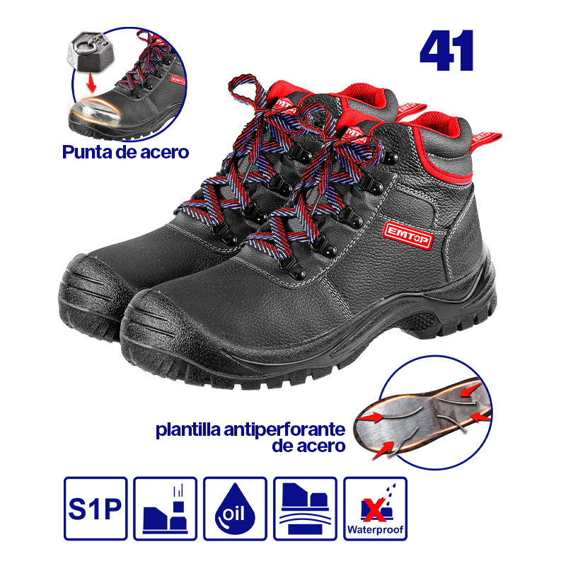 BOTAS DE SEGURIDAD PUNTA DE ACERO, ENTRESUELA ANTIESTATICO, ANTIVIBRACION, SUELA DE DOBLE DENSIDAD. TALLA 41. EMTOP