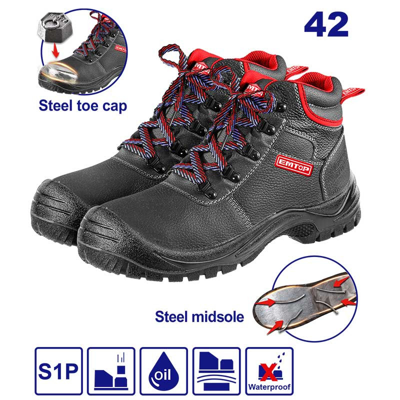 BOTAS DE SEGURIDAD PUNTA DE ACERO, ENTRESUELA ANTIESTATICO, ANTIVIBRACION, SUELA DE DOBLE DENSIDAD. TALLA 42. EMTOP