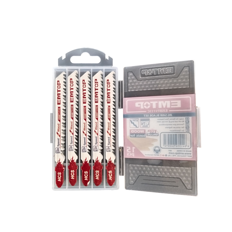 [EJSBT5111C]-SET DE 15 HOJAS DE SIERRA CALADORA TIPO T, SEGUETA CORTE EN MADERA 8 TPI X 4 PULGADAS DE LARGO. MARCA EMTOP