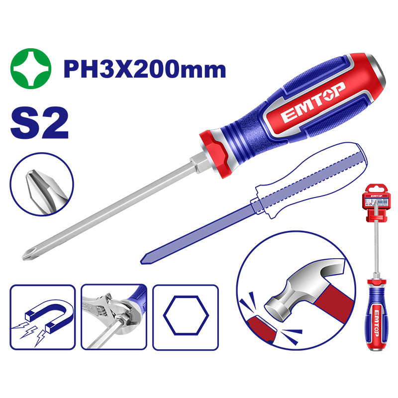 DESARMADOR DE GOLPE, PUNTA PHILLIPS PH3 MAGNETICA, LARGO 8 PULGADAS. EMTOP