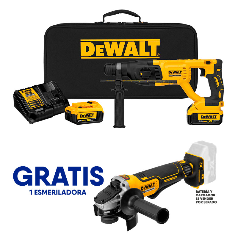 ROTOMARTILLO SDS PLUS INALAMBRICO 20V, 2.6 JOULES, BRUSHLESS, GRATIS ESMERILADORA 4-1/2 DCG413B. DEWALT