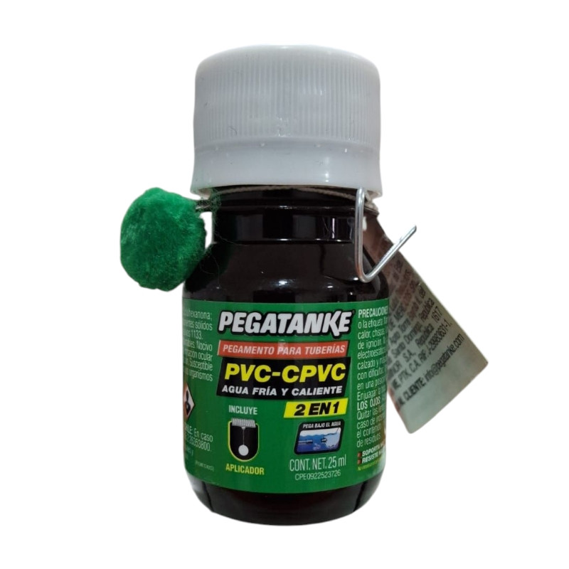 [PVPT160]-PEGAMENTO 2 EN 1 PVC-CPVC, 25ML, PARA UNIR TUBERIAS DE AGUA FRIA Y CALIENTE, SECADO RAPIDO, PEGA BAJO EL AGUA. PEGATANKE