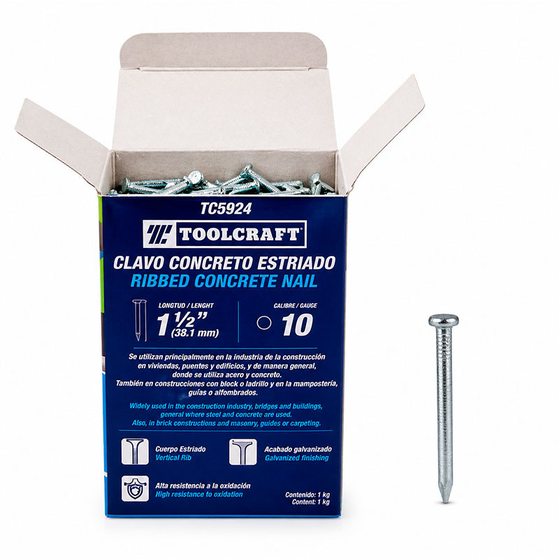 [TC5924]-CLAVO ACERO ESTRIADO 1 1/2 PLG. PARA CONCRETO CAJA 1KG. TOOLCRAFT